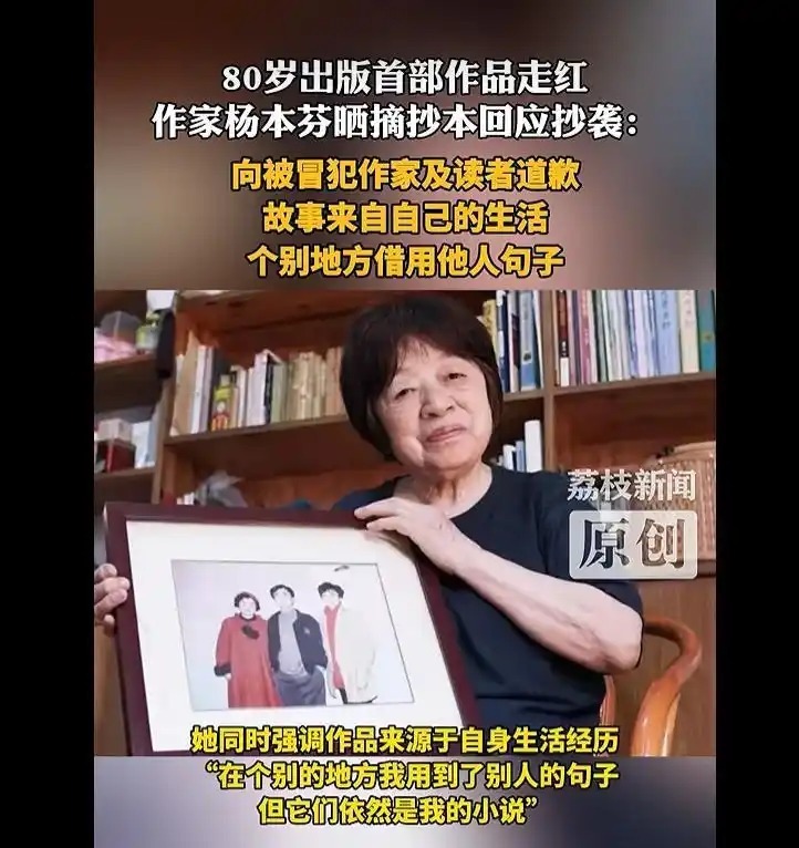 据悉,此前,博主“抒情的森林”在社交媒体表示,曾推出《秋园》《我本芬芳》等作品的作家杨本芬的部分作品内容,与王朔、余华、朱自清、霍达等作家的作品部分句子结构上,存在相似之处。对此,杨本芬2月25日发文回应,对作家和读者表示歉意,并表示,“我的故事来自我的生活,它们是不可替代的生命体验。在个别的地方我用到了别人的句子,但它们依然是我的小说……”